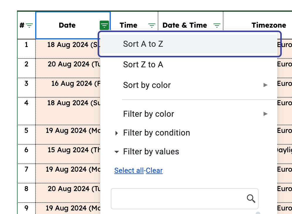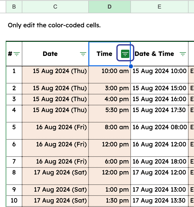 Let’s say you’ve just added an item in the table but now the itinerary is not arranged in chronological order.