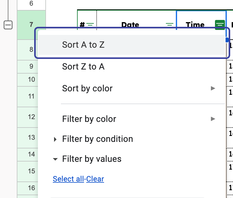 The filter should be applied to the table by default. If not, select the range B7:O and apply the filter view.